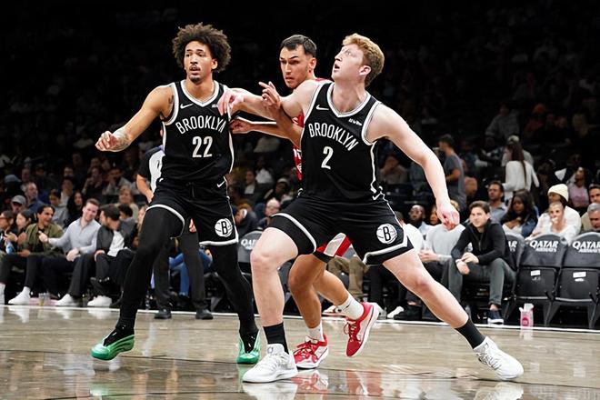 本场比赛中,篮网的替补锋线新秀丹尼-沃尔夫(Danny Wolf)的表现也算是有了一定程度的提升。沃尔夫全场出场12分钟,投篮4中3,三分线外2中2,罚球2中1,得到了9分1篮板4助攻的数据,还有2次失误,正负值为+9。沃尔夫在进攻端也算是展现出了比较全面的得分能力,他也展现出了一定的传球能力和组织能力。在手握大量球权的情况下,他还是刷出了不错的数据。不过沃尔夫在运动能力和移动速度方面的短板依然是非常明显的,他的数据也是建立在手握大量球权的基础上的。最关键的是,篮网面对的是太阳的第三阵容球员,球队当时的竞争力已经比较有限了。在这种情况下刷出不错的数据,事实上也是有些缺乏说服力的。